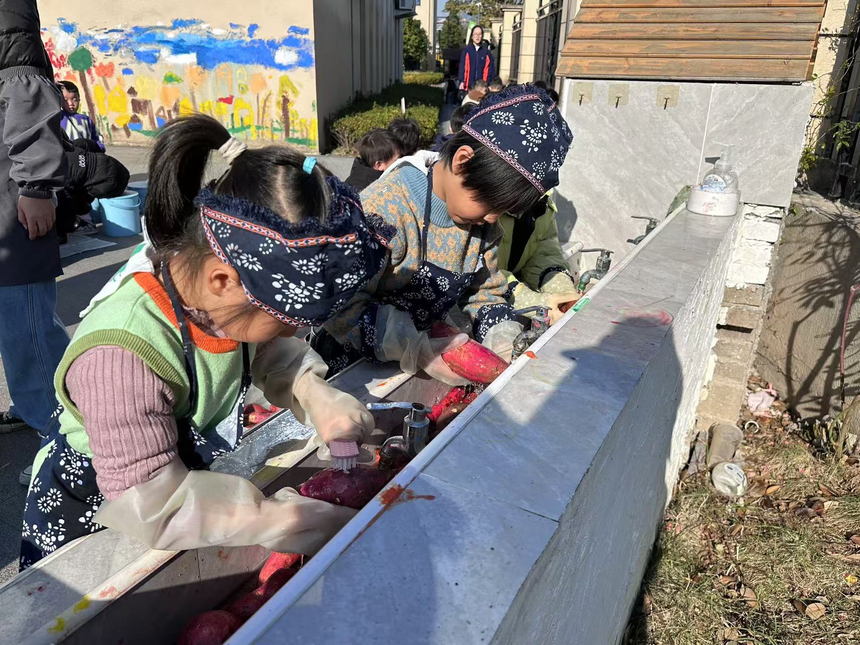 采摘结束后,孩子们来到清洗区。在老师的指导下,他们认真地清洗着每一棵蔬菜。虽然小手被冷水冻得通红,但孩子们却乐在其中。清洗干净的蔬菜被整齐地摆放在篮子里,准备用来煮火锅。