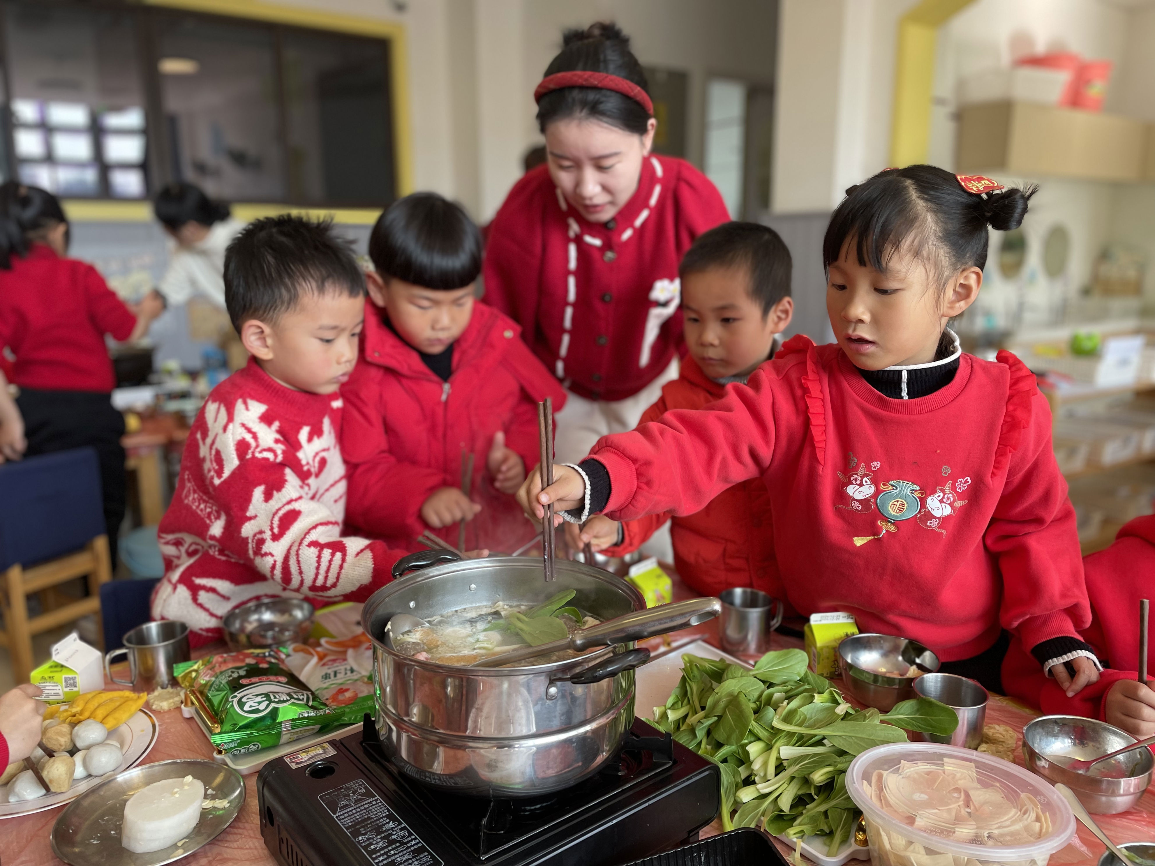近日,象山县新丰幼儿园举办了一场别开生面的迎新年活动,孩子们自己动手采摘、清洗蔬菜,并围坐在一起品尝火锅,用这种独特的方式迎接新年。